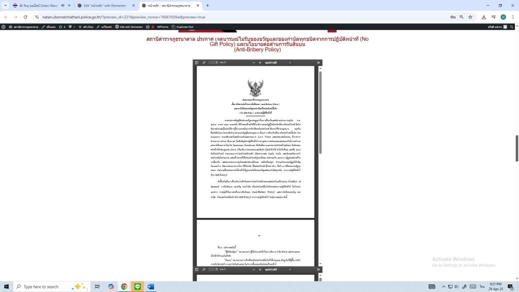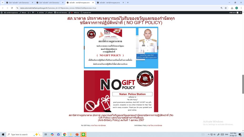 ประกาศนโยบายต่อต้านการรับสินบน No Gift Policy 2568 สถานีตำรวจภูธรนาตาล ภาษาอังกฤษ