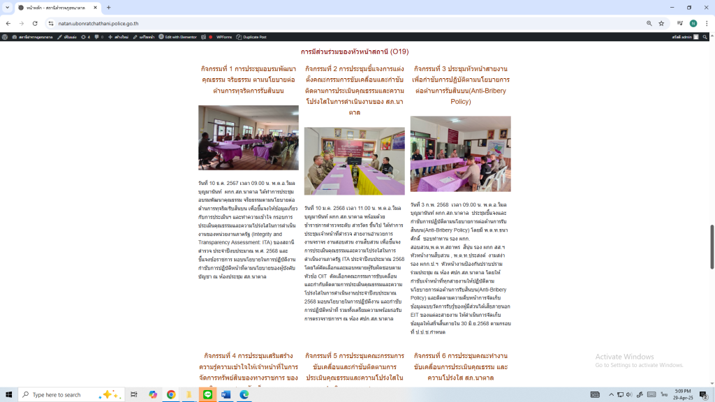 วันที่ 3 ก.พ. 2568 เวลา 09.00 น. พ.ต.อ.วิมล บุญมานันท์ ผกก.สภ.นาตาล ประชุมชี้แจงและกำชับการปฏิบัติตามนโยบายการต่อต้านการรับสินบน(Anti-Bribery Policy) โดยมี พ.ต.ท.ธนาศักดิ์ ชอบทำทาน รอง ผกก. สอบสวน,พ.ต.ท.สถาพร สีนุ่น รอง ผกก สส.ฯ หัวหน้างานสืบสวน , พ.ต.ท.ประสงค์ งามสง่า รอง ผกก.ป.ฯ หัวหน้างานป้องกันปราบปราม ร่วมประชุม ณ ห้อง ศปก.สภ.นาตาล โดยให้กำชับเจ้าหน้าที่ทุกสายงานให้ปฏิบัติตามนโยบายการต่อต้านการรับสินบน(Anti-Bribery Policy) และติดตามความคืบหน้าการจัดเก็บข้อมูลแบบวัดการรับรู้ของผู้มีส่วนได้เสียภายนอก EIT ของแต่ละสายงาน ให้ดำเนินการจัดเก็บข้อมูลให้เสร็จสิ้นภายใน 30 มิ.ย.2568 ตามกรอบที่ ป.ป.ช.กำหนด